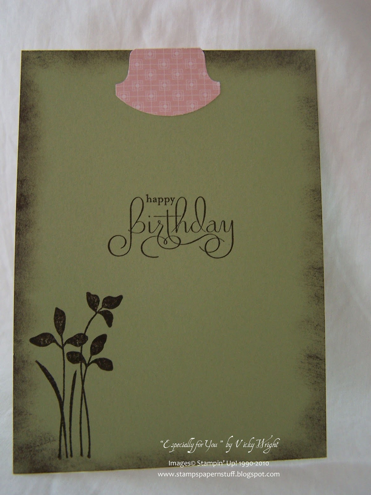 Cut smaller piece of DSP – Blushing Bride, punch 1/2 circle at top