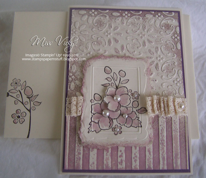 Isn’t the colour very deceiving. Bet you thought it was Perfect Plum Ink too….. I love the whole effect, especially since adding the piece of coloured cardstock.
