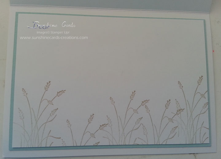 For the inside, I stamped the Reed image a couple of times direct onto Whisper White Cardstock in Crumb Cake Ink prior to layering onto Soft Sky & finally to the inside of the card.