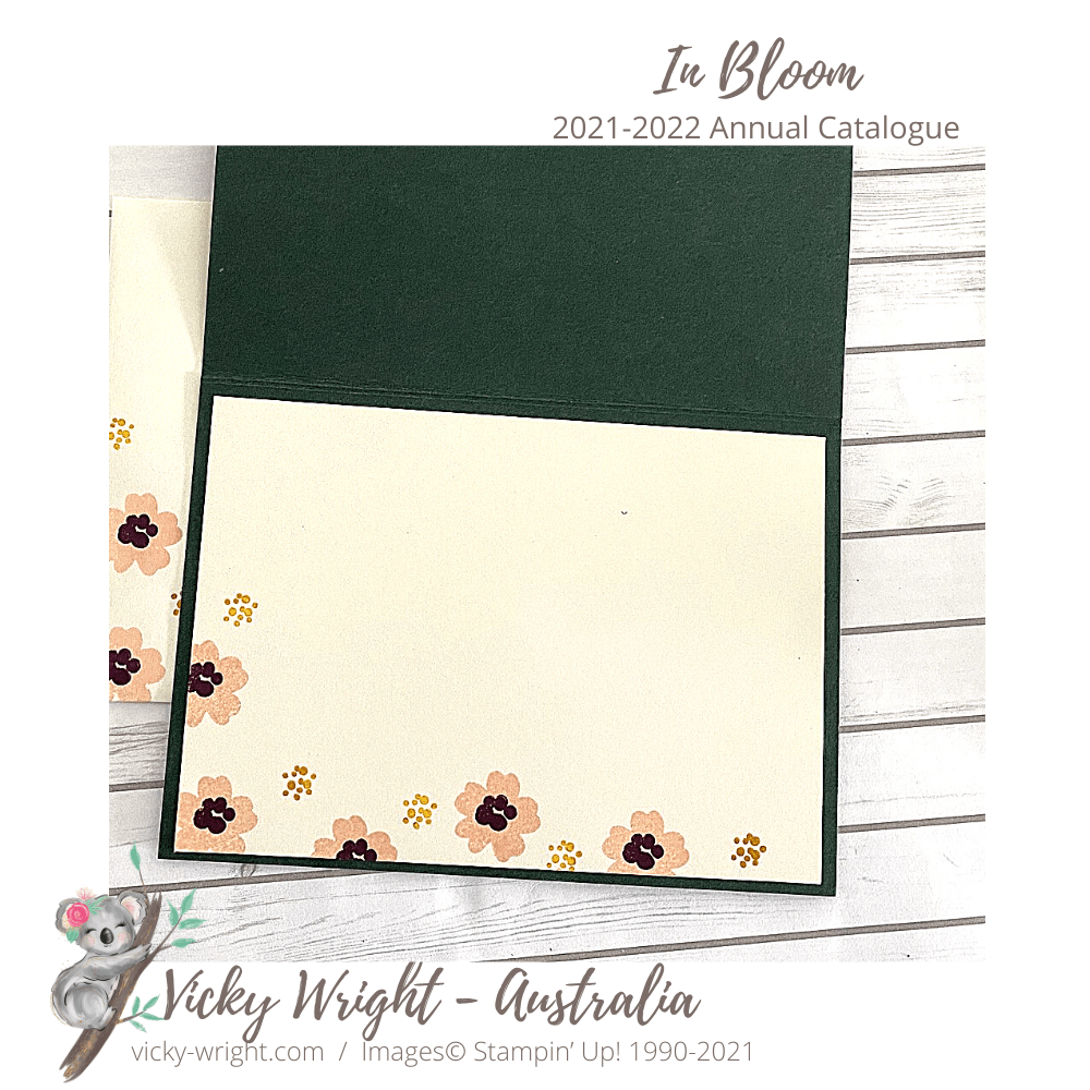 I grabbed the In Bloom Stamp Set off the shelf, only because I haven’t used it for so long. Then went to the Colour Coach to select a couple of colours. Now, I will admit this colour combination is way out of my comfort zone but it is growing on me.